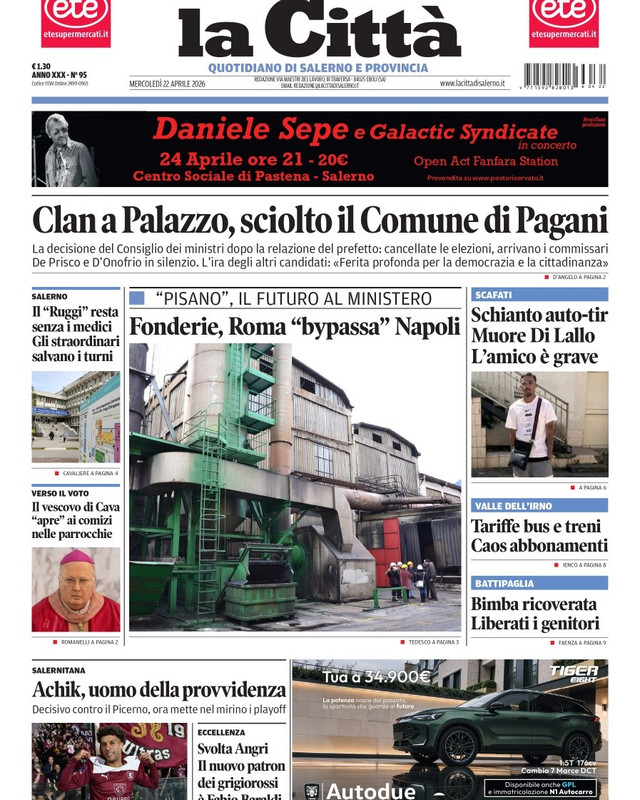 "Achik, uomo della provvidenza" titola il quotidiano La Città in edicola oggi sulla Salernitana e sul calciatore granata. Decisivo contro il Picerno, ora mette nel mirino i playoff.