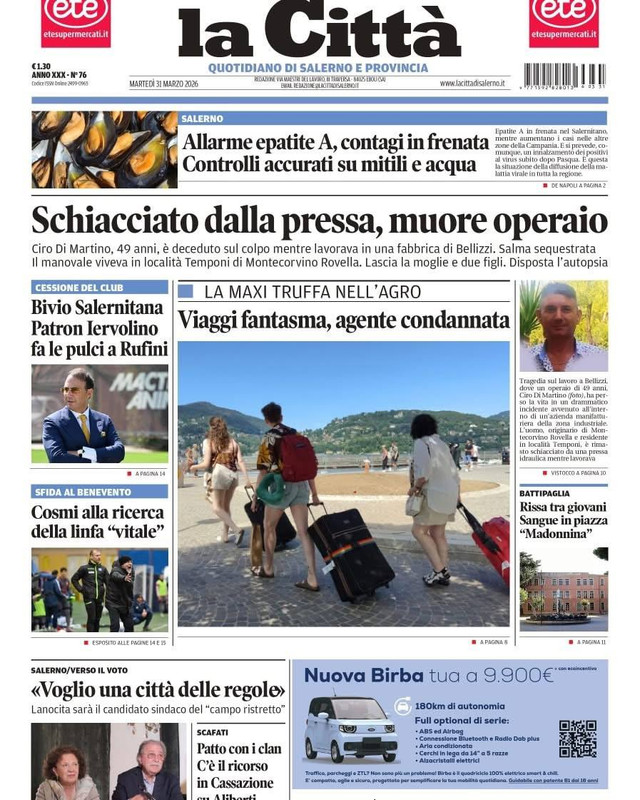 "Bivio Salernitana, patron Iervolino fa le pulci a Rufini. Cosmi alla ricerca della linfa 'vitale'" titola il quotidiano La Città in edicola oggi sulla cessione del club e sulla sfida col Benevento.