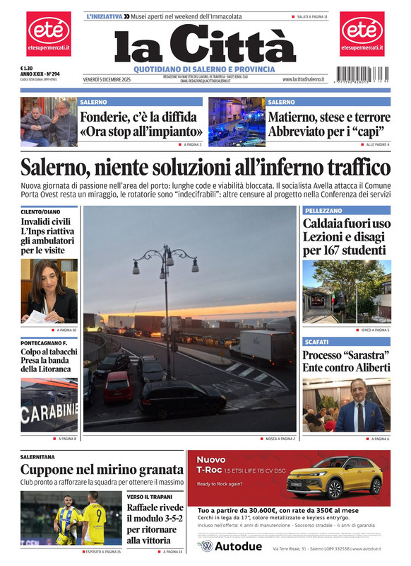 "Cuppone nel mirino granata" titola il quotidiano La Città in edicola oggi, parlando della Salernitana, pronta a rafforzare la squadra per ottenere il massimo. Nel frattempo c'è il Trapani all'orizzonte con Raffaele che pensa di rivedere il modulo 3-5-2 per tornare alla vittoria.