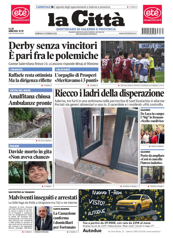 "Derby senza vincitori. È pari fra le polemiche" titola il quotidiano La Città in edicola oggi su Cavese-Salernitana finita 1-1. A Lescano risponde Minaj al 90. Raffaele resta ottimista ma la dirigenza riflette. Su sponda blufoncè c'è l'orgoglio di Prosperi che dice "meritavamo i tre punti".