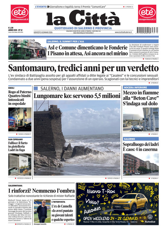 "I rinforzi? Nemmeno l'ombra" titola il quotidiano La Città sulla Salernitana, in edicola oggi. Solo trattative nonostante le richieste di mister Raffaele. C'è poi un'intervista all'ex ds Cannella che dice: "Io avrei puntato su giovani talenti e qualche esperto".