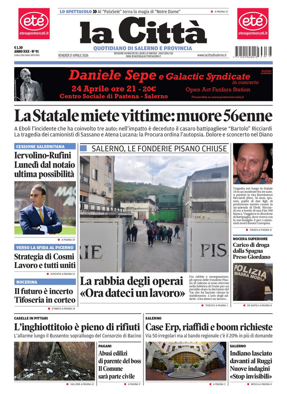 "Iervolino-Rufini, lunedì dal notaio ultima possibilità. Strategia di Cosmi: lavoro e tutti uniti" titola il quotidiano La Città in edicola oggi sulla cessione della Salernitana e sulla sfida al Picerno.
