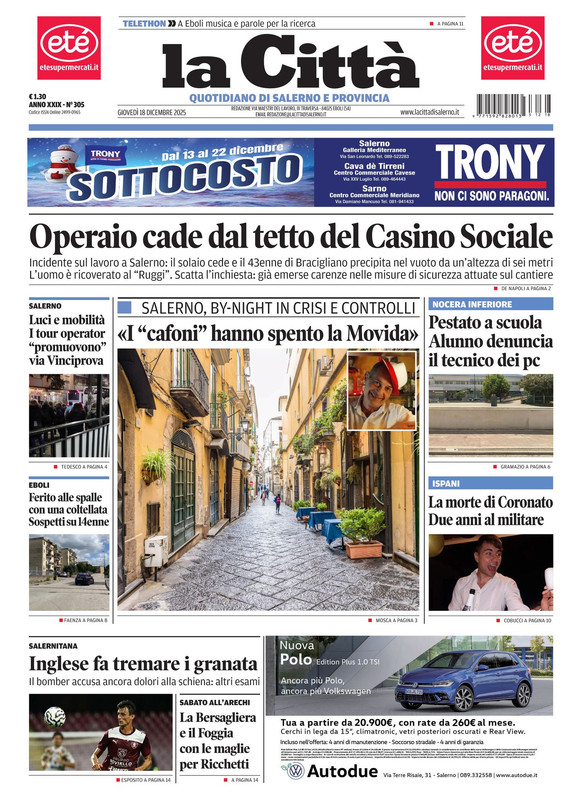- 07:55 La Città - Inglese fa tremare i granata