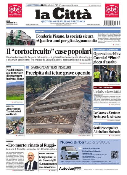 "Operazione blitz. Cosmi al 'Pinto' gioca d'assalto" titola il quotidiano La Città in edicola oggi sul match Casertana-Salernitana in programma questa sera.