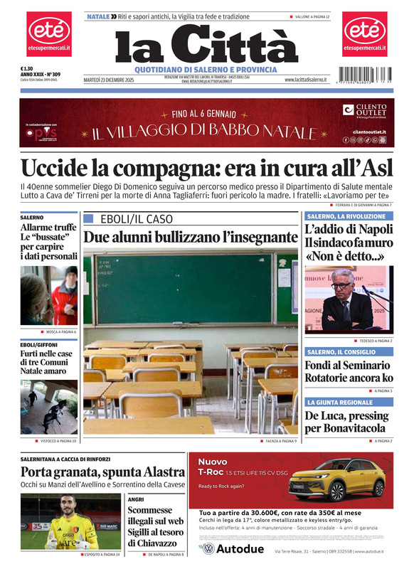 "Porta granata, spunta Alastra" titola il quotidiano La Città in edicola oggi parlando della Salernitana che è a caccia di rinforzi. Occhi su Manzi dell'Avellino e Sorrentino della Cavese.