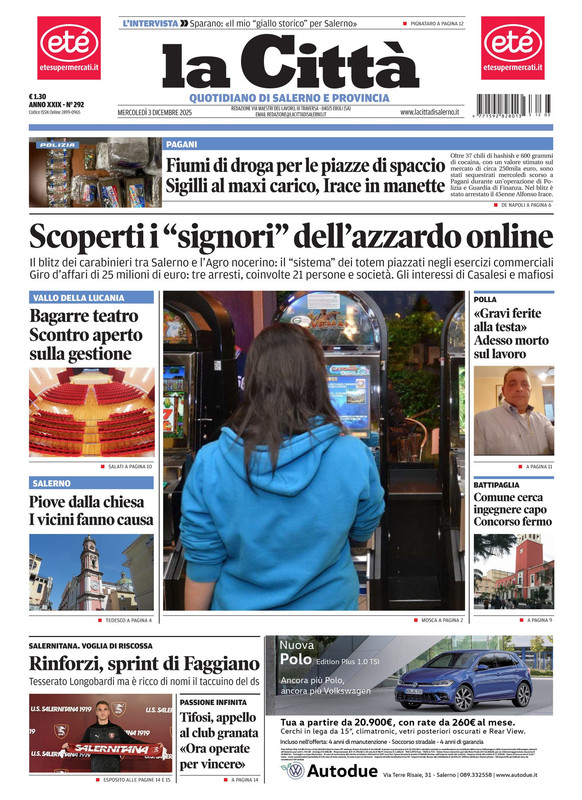 "Rinforzi, sprint di Faggiano" titola il quotidiano La Città in edicola oggi concentrandosi sulla voglia di riscossa della Salernitana. Già arrivato Longobardi, è ricco di nomi il taccuino del ds. Intanto i tifosi fanno appello al club chiedendo di 'operare per vincere'.