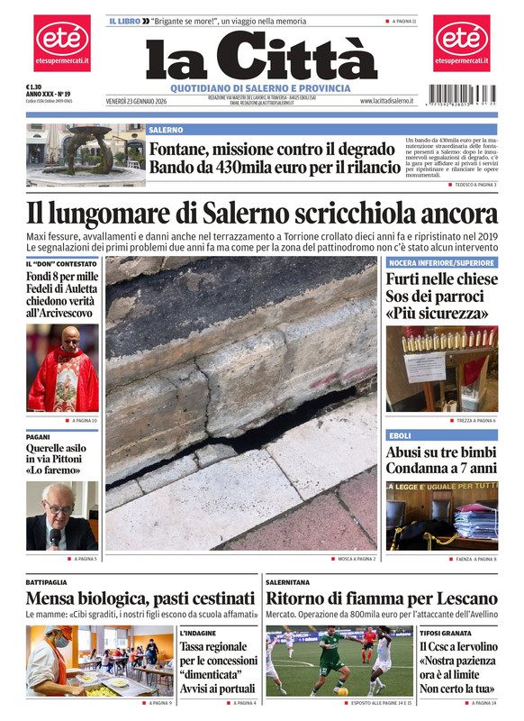 "Ritorno di fiamma per Lescano" titola il quotidiano La Città in edicola oggi sul mercato della Salernitana. Operazione da 800 mila euro per l'attaccante dell'Avellino. Spazio poi ai tifosi con il CCSC che dice a Iervolino "Nostra pazienza ora è al limite non certo la sua".