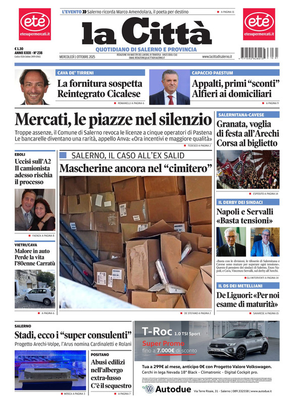 "Granata, voglia di festa all'Arechi. Corsa al biglietto" titola il quotidiano 'La Città' in edicola oggi, nel mirino c'è infatti Salernitana-Cavese di domenica prossima. Spazio poi alla questione stadio. Ecco i 'super consulenti'. Per il progetto Arechi-Volpe, l'Arus nomina Cardinaletti e Rolani.