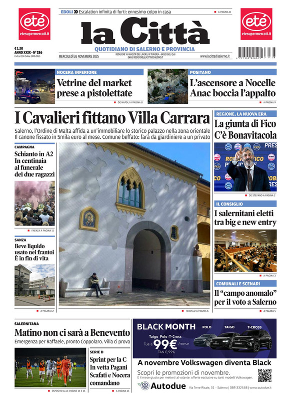"Matino non ci sarà a Benevento" titola il quotidiano La Città in edicola oggi sulla Salernitana. Emergenza per Raffaele, pronto Coppolaro mentre Villa ci prova.