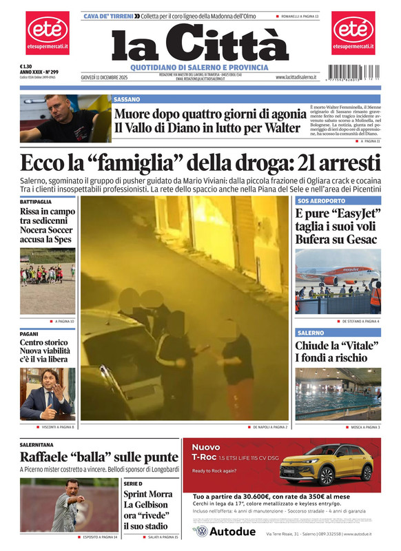 "Raffaele 'balla' sulle punte" titola il quotidiano La Città in edicola oggi parlando della Salernitana. A Picerno il mister è costretto a vincere, Bellodi sponsor di Longobardi.