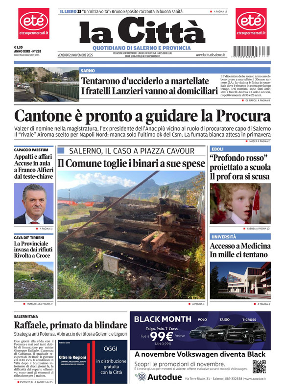 "Raffaele, primato da blindare" titola il quotidiano La Città in edicola oggi, sulla Salernitana. Il tecnico pensa alle strategie anti-Potenza poi si parla dell'abbraccio dei tifosi a Golemic e Liguori.