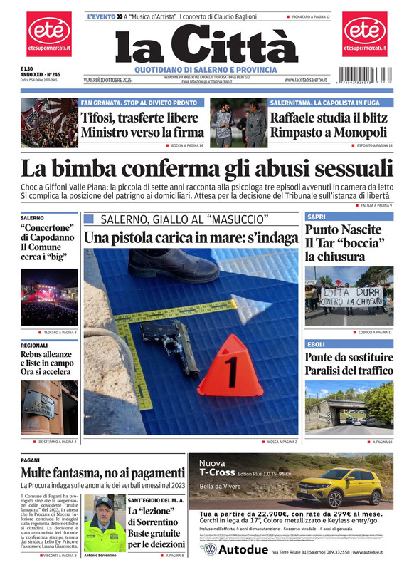 "Raffaele studia il blitz. Rimpasto a Monopoli" titola oggi il quotidiano 'La Città' parlando della capolista Salernitana in fuga. Spazio poi ai tifosi con lo stop ai divieti di trasferta che ormai sembra pronto. "Ministro verso la firma" scrive il giornale.