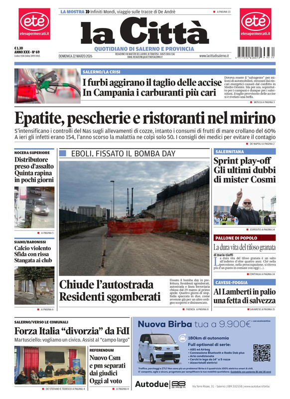 "Sprint play-off. Gli ultimi dubbi di mister Cosmi" titola il quotidiano La Città in edicola oggi sulla Salernitana.