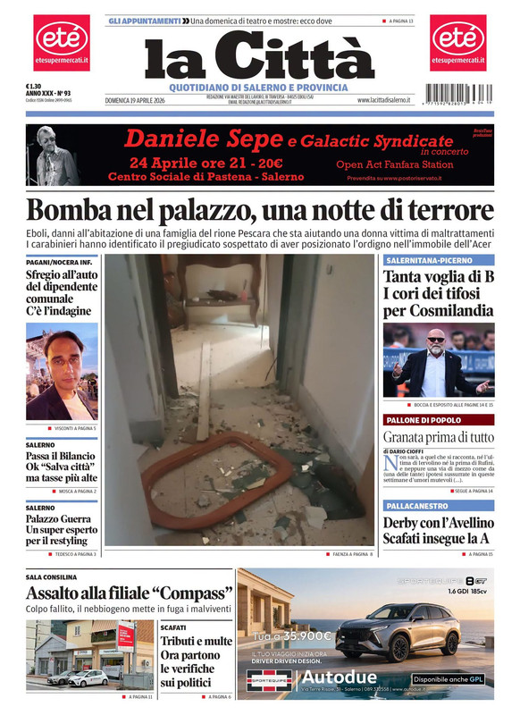 "Tanta voglia di B. I cori dei tifosi per Cosmilandia" titola il quotidiano La Città in edicola oggi, in vista della sfida Salernitana-Picerno di questa sera.