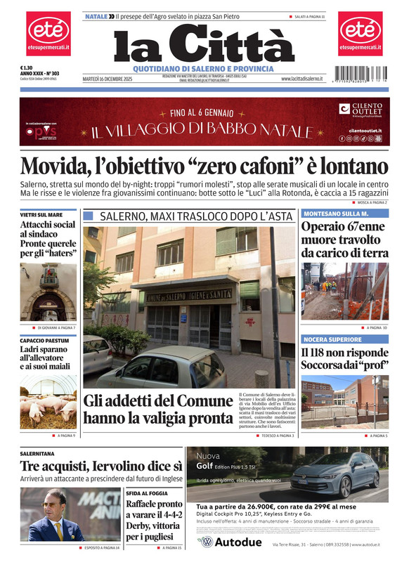 - 08:19 La Città - Tre acquisti, Iervolino dice sì. Raffaele pronto a varare il 4-4-2
